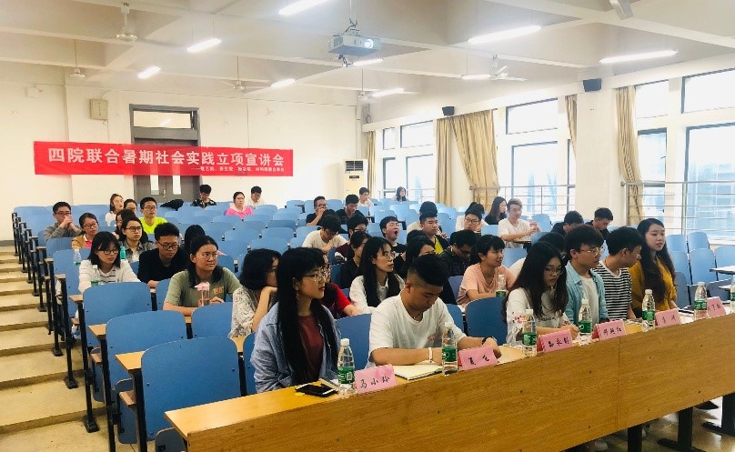 5月18日14:30,材料院、资生院、粉冶院、建艺院四院联合暑期实践立项宣讲会于新校区B座218教室顺利举行。伟德国际1946官网社会实践中心主任邓艳红,暑期社会实践优秀代表建艺院康硕,罗晓岚,刘宇赫,资生院夏飞,粉冶院马小玲出席了活动。本次宣讲会由材料国际1801刘若辰主持。