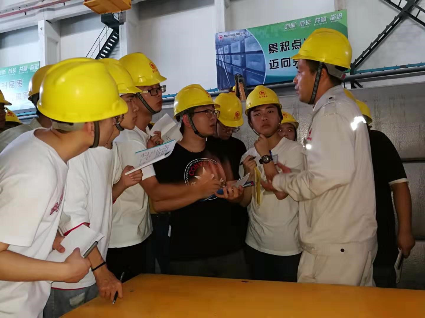 实习以“南山铝材公司”和“南山轻合金公司”为定岗实习单位,分别跟班实习一周,并于最后一周参观实习了南山集团的氧化铝公司、电解铝公司、航材园、南山铝业科技品牌展览馆和国家铝合金压力加工工程技术研究中心。