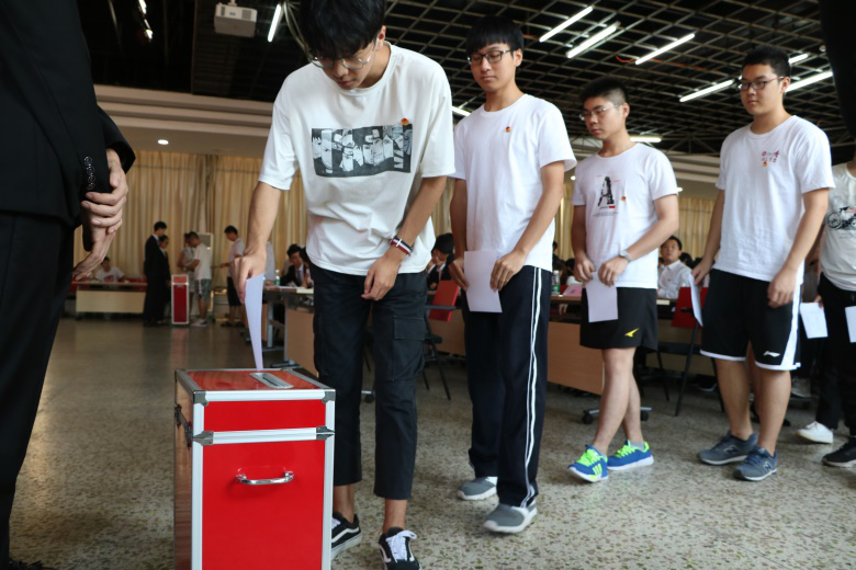 会议第二阶段,员工及团学会代表进行投票选举伟德国际194647届团委常务委员会委员、员工会主席团成员。本次双代会选举以无记名投票的方式,采用差额选举办法,最终确定入选名单。每一位与会代表依次来到投票箱前,投出了宝贵而神圣的一票。