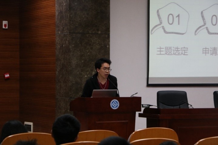 校团委组织部活动管理中心郭冬阳同学进行经验分享。他通过对每月团日活动流程的具体分析和活动要素的具体限定,指出了团支书的职责,强调了工作中的注意事项,并对团日总结中可能会出现的雷区进行了提醒。最后,他运用正反对比,深刻而具体地解释了该如何举办有趣又有意义的团日活动。