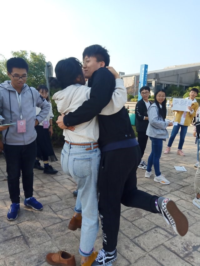 第二个活动是泡泡堂,规则是男生女生在工作人员的指挥下限时做出相同的动作。初次接触的害羞,随着游戏的进行慢慢地消除了,在收获欢乐的同时,也拉近了双方的距离。这个游戏消除了男女生踩气球时的小心翼翼,从而推动整个活动的气氛走向了高潮。
