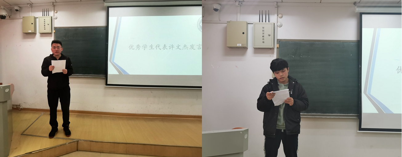 员工代表许文杰,周坤上台发言,两位分享了自己上一年在创新培养实验室的收获,并且就实验中合理分工、实验研究态度等方面向学弟学妹们提出了良好的建议,期待他们在新的一年中得到良好的锻炼。