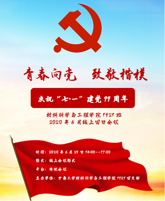 2020年6月29日,伟德国际1946官网伟德国际1946冶材1921团支部举办了以“青春向党,致敬楷模”为主题的线上团日活动。本次团日活动旨在学习中国共产党党史成就、致敬战疫英烈楷模、总结年度团支部工作报告,引导青年团员树立积极向上的精神风貌。