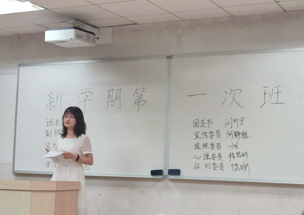 班长童婧琰同学主持了班委的改选工作,并鼓励在前三学年没有做过班委工作的同学参与竞选。王家振同学第一个站起来,在班长一职旁边写上自己的名字,同学们也对他的勇气给予热烈的掌声。在第一位同学的激励下,其他想当班委的同学纷纷起身,在心仪的职位旁留名,已当过班委的同学也分享了自己在班委工作中的趣事,也有同学想主动担当收青年大学习的任务。班委改选在愉快的氛围中结束。