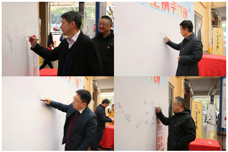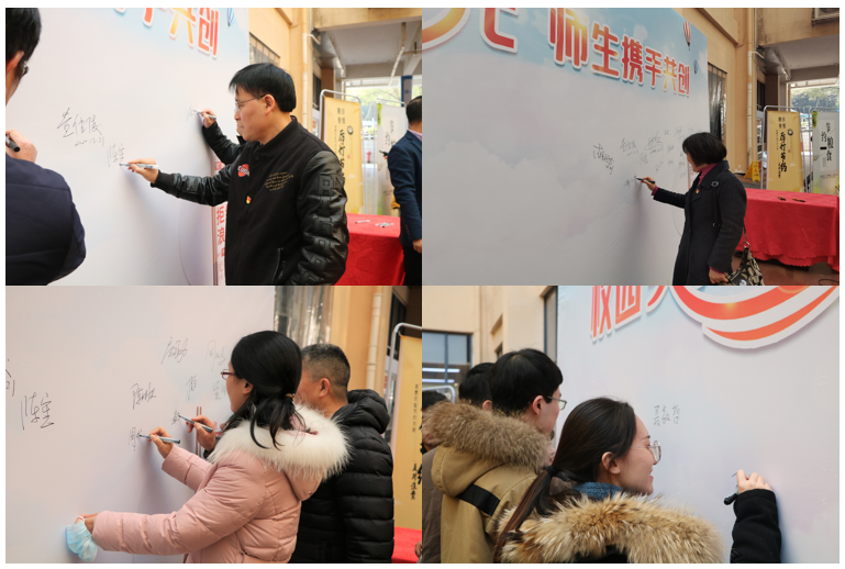 最后,校领导与在场师生一起在承诺书展板上签字,并合影留念。