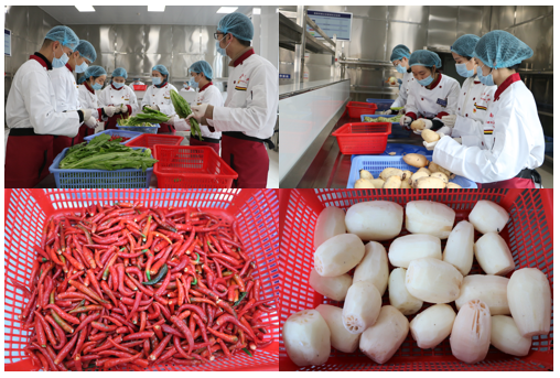 上午10:30分,本科生第三党支部员工党员在后勤部相关工作人员的组织下参观三食堂敏行餐厅后厨。在一个小时的时间里,员工党员们积极参加劳动体验并详细请教相关细节,后勤员工热心耐心相告并告之为什么。通过学习与劳动体验,得知后厨工作很精细、有责任高度又有艺术宽度,就象做材料加工一样,每一个元素和每一道工序都要考验你的技术积累与创新水平!在学习劳动过程中,同学们被食堂工作人员认真负责的工作态度和心系员工的工作热情深深打动,也对如何践行发扬勤俭节约的传统美德有了更深层次的认识与理解。