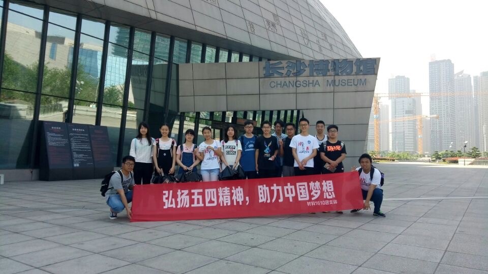 5月13日,材料1610班于橘子洲地铁站与长沙市博物馆两地顺利开展 “弘扬五四精神,助力中国梦想”团日活动。 该活动旨在让每位同学切身体会“爱国进步,民主科学”五四精神的真正含义,并能将理论与实际相结合。