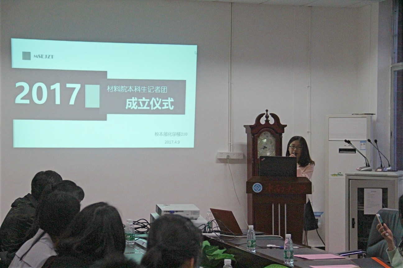 4月9日16:00,材料院本科生记者团成立暨信息宣传总结表彰大会在校本部化学楼210成功召开。大会旨在宣布材料院本科生记者团正式成立,加强对公司及班级活动宣传力度;表彰优秀宣传委员,选拔优秀记者典型,发挥榜样带头作用。16级辅导员彭需发老师,43届团委员工会主席林恒、副书记李航,44届团委员工会主席孙玮琛出席此次会议,各班宣传委员参与其中。大会由信息部部长张博涵主持。