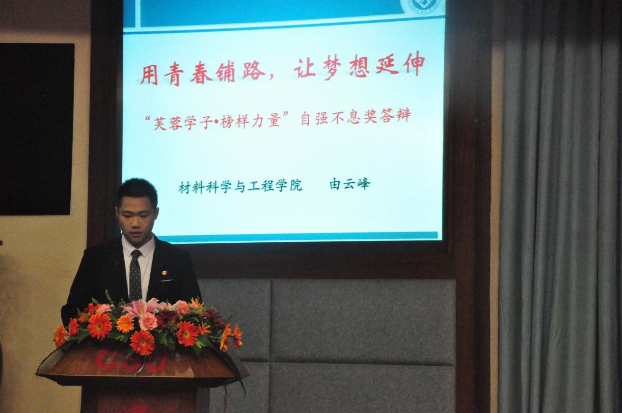 本次答辩一共设有社会实践奖、团队合作奖、学术创新奖、公益行动奖、自强不息奖、经济管理之星奖6个奖项类别。伟德国际1946由云峰竞参自强不息奖,他以答辩主题 “用青春铺路,让梦想延伸”主要就自己在学术研究,勤工助学等方面取得的成绩作出了阐述。“天行健,君子以自强不息”,由云峰虽然家庭贫困,但是不向命运低头,用自己的行动诠释了自强不息的真谛。