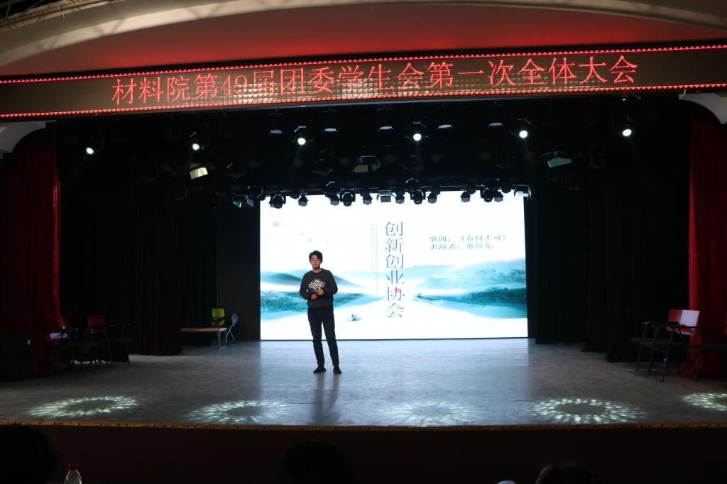大会的最后一项是张彦隆老师进行总结致辞。他对团学会全体成员提出了表扬,对本学期以来的工作进行了总结,并对本届团学会提出了更高的要求。最后,深受现场同学们感染的张老师也拿起了吉他和麦克风,为团学会全体成员献唱歌曲。同学们纷纷拿出手机拍照摄像,记录下这师生共渡的美好的瞬间。