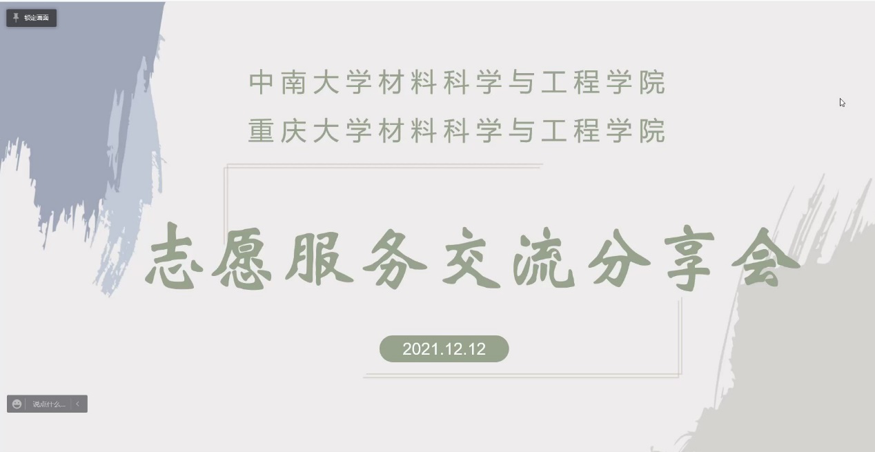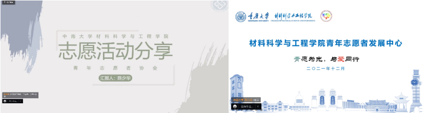 在两校材料院青志协负责人的精彩总结和参会同学们的积极互动结束之后,本次两校联合线上志愿服务交流分享会圆满结束。本次会议倡导了互助互爱和无私奉献的精神,传播了“奉献、友爱、互助、进步” 的思想,使广大同学对志愿服务有了更深刻的了解,这在一定程度上提升了老员工的社会责任感,并有效地呼吁更广大的群体参与到爱心志愿服务当中。同时,志愿服务交流平台的建设有助于两校同学集思广益,共同策划、监督新志愿服务项目和活动的开展,力争让志愿服务工作具备更高的立意和更深远的影响力。