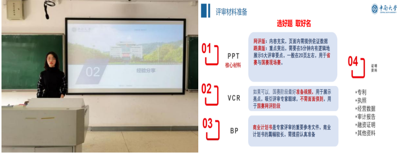 随后,参与上一届“升华杯”并取得佳绩的高嘉骏同学上台分享参赛经验。在评审材料准备、团队组建、现场答辩、商业计划书、PPT制作等方面解析了参赛要点和注意事项,并建议大家争取担任团队负责人,提升自身综合能力。本次宣讲会圆满落下帷幕,同学们受益匪浅。