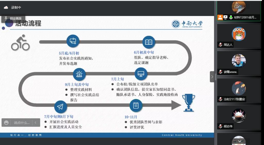4月9日下午,伟德国际19462022年暑期社会实践动员大会在腾讯线上会议室顺利举行。此次会议旨在向广大同学传达公司社会实践政策、提供有关社会实践的指导和经验、帮助同学们顺利开展暑假社会实践活动。会议邀请了伟德国际1946团委副书记崔鸣芮,2021年暑期社会实践优秀社会实践团队队长祝一帆,优秀社会实践个人朱正午作为嘉宾进行经验分享。材料学院社会实践部全体成员和各年级同学参加了本次大会。