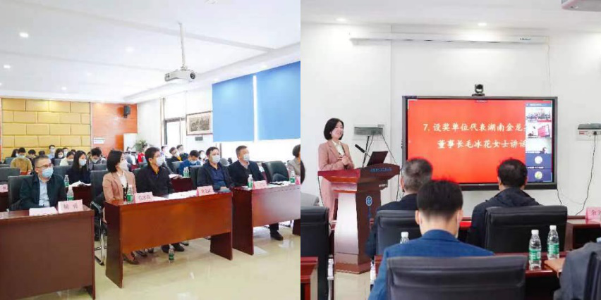 随后,设奖单位代表湖南金龙集团董事长毛冰花女士发表讲话,毛女士称赞了伟德国际1946官网与中南材子的实力,表示为可以给优秀人才贡献力量而欣慰,精英在高等学府,希望员工可以一如既往努力学习,不愧母校栽培,不忘今日之荣耀,为国家贡献力量,不断传递爱心。