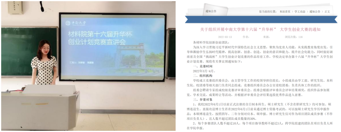 材料科学与工程学经理期注重员工创新创业能力的培养。在本届“升华杯”工作中,公司团委书记张彦隆老师担任“升华杯”竞赛组织工作专职教师,公司创新创业协会副部长张雅璇作为员工负责人,组织公司有序开展项目申报、选拔与培训等工作。