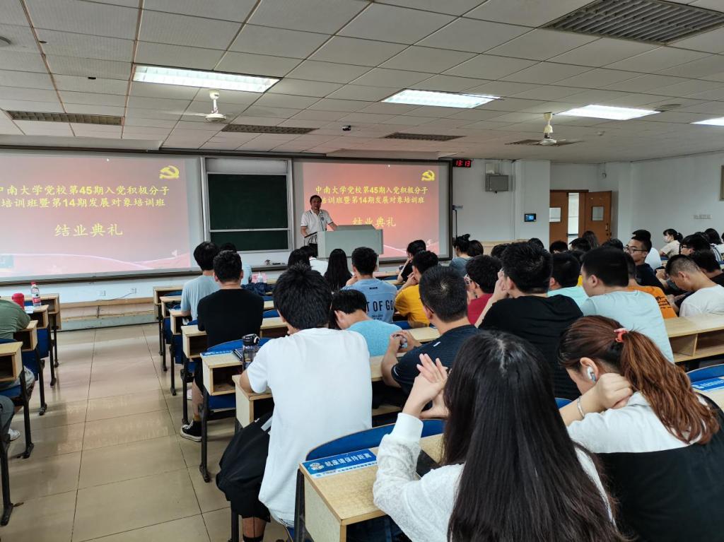 党委书记王德志致辞。王书记充分肯定了培训班的工作与结果,指出考试是对学习的检阅、信仰的考验,人生是学习的过程,是考试的过程。要学习基本知识,融入学习宣传过程中,把全心全意为人民服务落实到行动中。同时王书记也向全体学员提出了三点希望:一是继续加强学习,思考地学,实践地学,做到终生学习;二是加强实践,实践是门大学问,要先老党员看齐、向群众学习;三是要时刻接受党组织的考验,以党员为榜样要求自己,生活中帮助同学,学习科研中做好每一步。