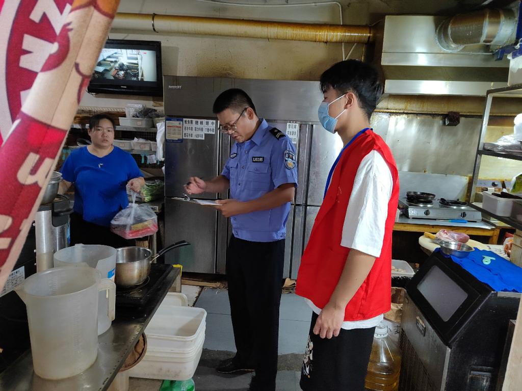 高温天气火灾等意外现象频发,为尽可能减少社区消防安全隐患,普及消防安全知识,实践队员协同青石街社区的工作人员与警察一起前往社区内的私人店铺进行调查普及。实践队员充分利用自己所学知识为群众讲解消防安全知识,向居民普及了安全用火、用电常识,同时对消防设施使用情况调研数据进行收集整理,主动思考和提出当前社区消防安全可改进完善的细节,旨在充分调动居民安全防范的主动性和自觉性。
