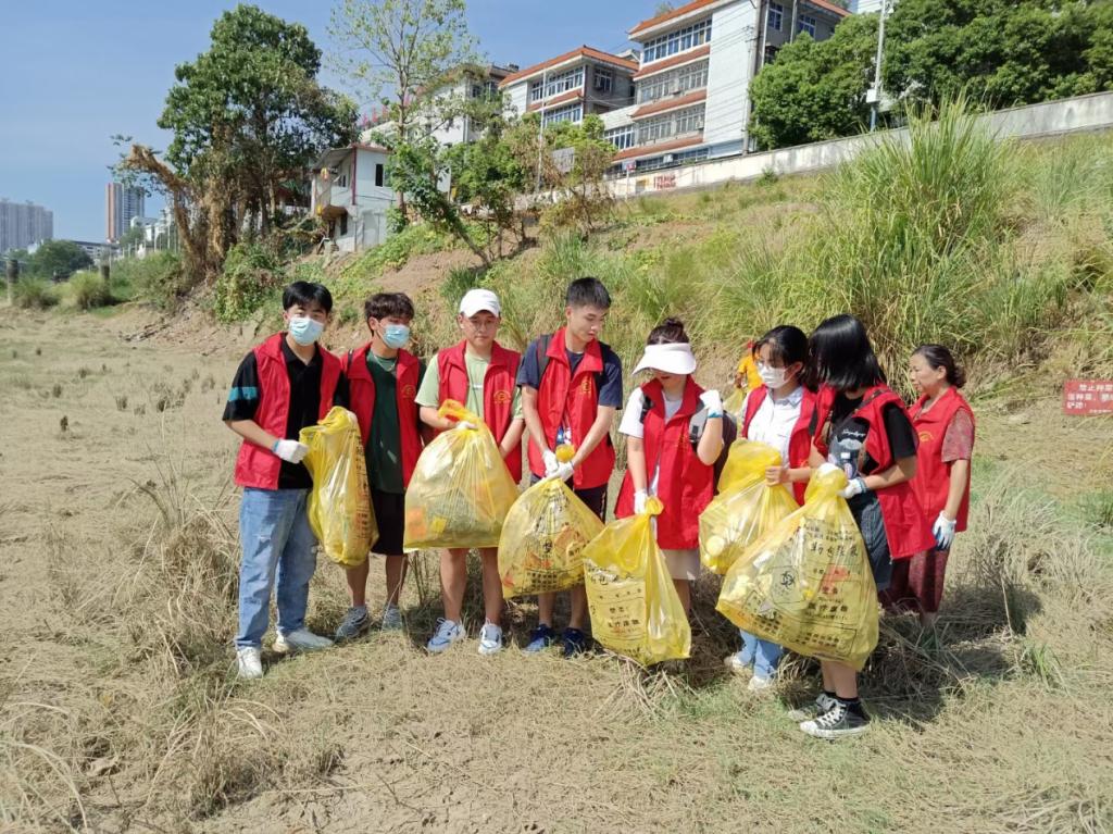 为响应“绿水青山就是金山银山”的号召,实践队员协同社区工作者来到了资江。在崇阳岭社区工作人员的协助下,整个队伍在资水旁梅堤管理站开展了一场以“保护母亲河”为主题的净滩行动。在河道旁,很多垃圾都被掩盖在又高又密的草丛下,难以分解的白色垃圾遍布河道,酷暑和暴晒加大了成员们清理的难度。经过长达两个半小时的努力,当成员手中的垃圾袋逐渐装满,河道重现干净清爽的面貌时,每个人的脸上都挂满了笑容。