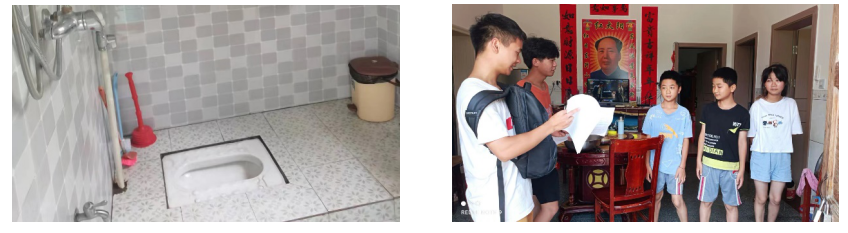 为了了解村民对于户厕改建的真实使用体验与需求,小组成员实地入户与村民交流沟通当前厕所卫生情况,并通过“纸质问卷+帮助填写”的方式结合具体情况就他们对厕所革命的了解程度、看法以及厕所相关的健康、心理和生活方面进行调研,并参观了村民家中已改建完成的厕所及化粪池。