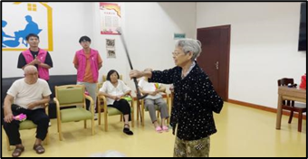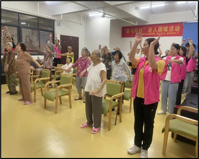 下午,福利院社工带领实践团成员进入老人的生活区,大家围在爷爷奶奶们的身边,聆听他们的教诲。见到实践团成员的那一刻,老人们的眼神中焕发出别样的光彩。李奶奶紧握着同学们的手说:“你们一定要好好读书,将来才不会被人欺负,用知识报效祖国,投身到建设社会主义的事业中去。”话语虽然质朴,却饱含着她对年轻一代的殷切期盼。还有一些老人将他们的人生经历娓娓道来,同学们得以窥见那一段独属于他们的峥嵘岁月,并幸运地记录下了李爷爷和安奶奶的故事。三点四十分,老人们照常来到活动室做保健操。做操过程中,虽然实践团成员屡屡找不准穴位,但是热情的爷爷奶奶们仍不厌其烦地为成员们指出问题。