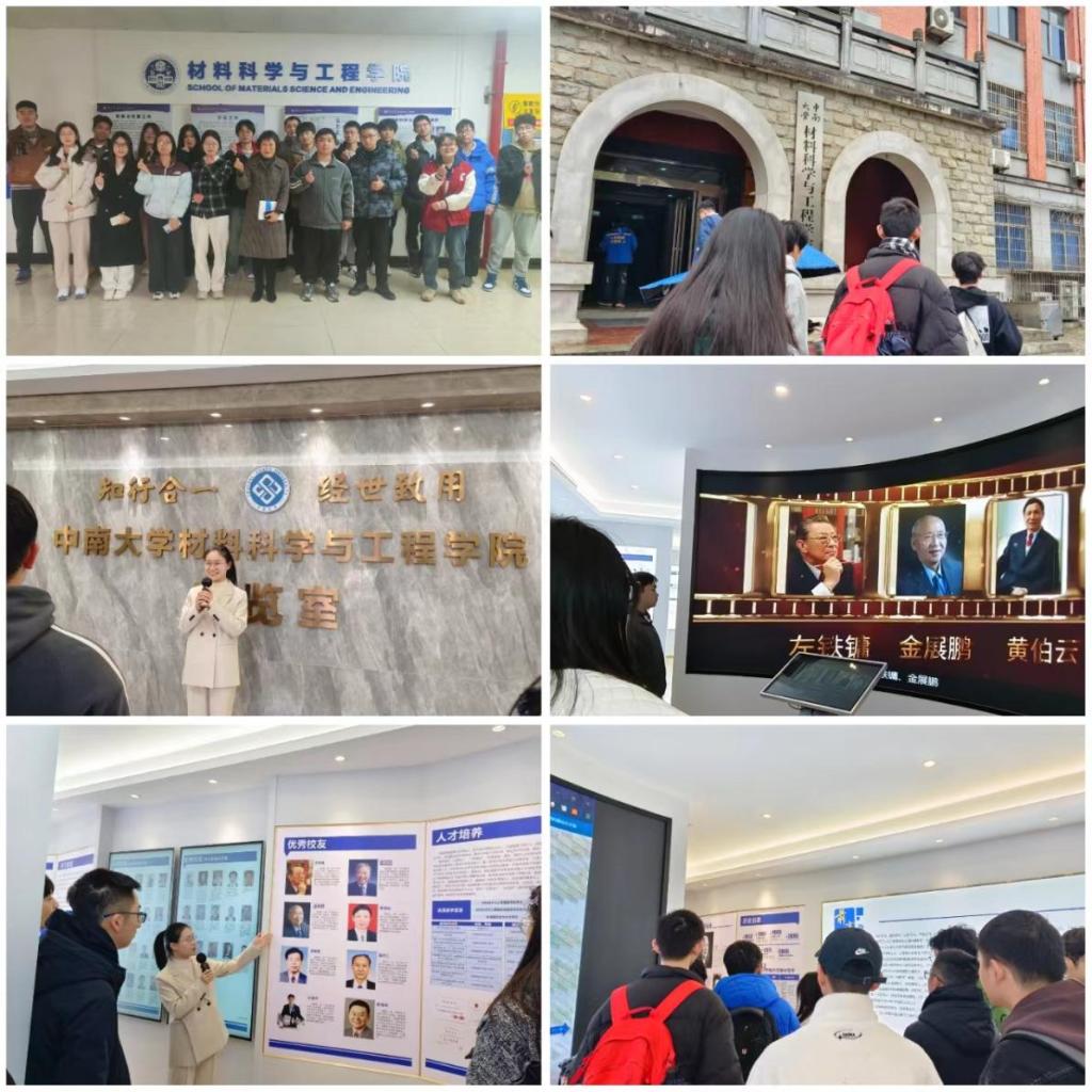 读书之余,为了加强同学们对材料学科的认知程度,提高学习兴趣,材料卓越2301班还于3进行了以“讲述中南材料故事,传递中南材料精神”为主题的特冶楼展览厅参观活动,以“走进长沙矿冶院,共赴材料之约”为主题的长沙矿冶院材料所参观活动。在参观展览厅、矿冶院的过程中,同学们了解了材料学科的起源、公司的发展历程、优秀员工、学科未来的发展方向等。