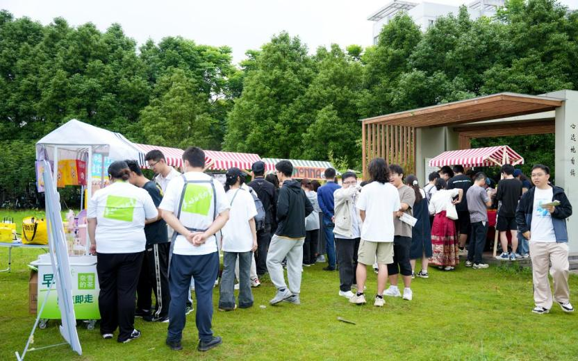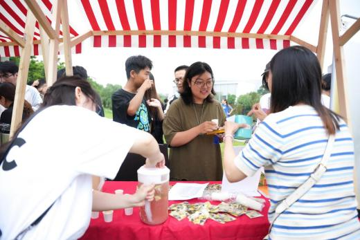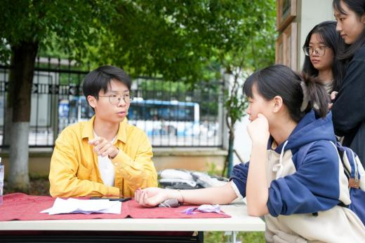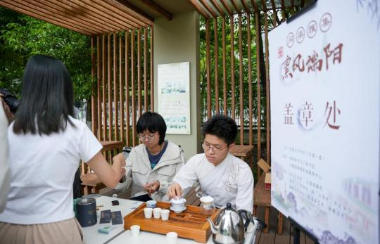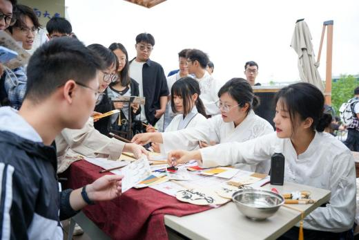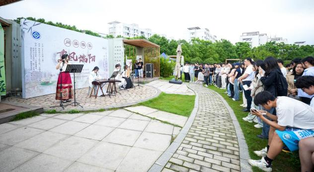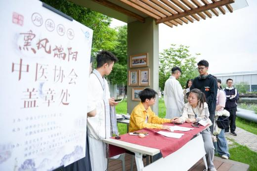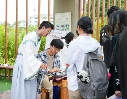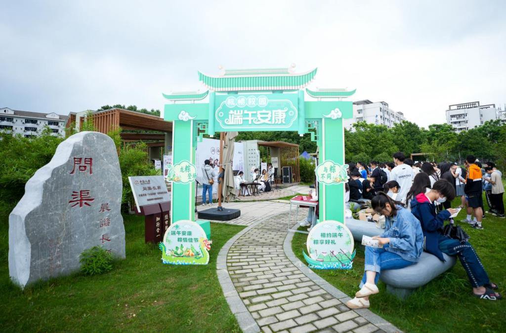 在南北朝廊亭,同学们排队等待中医把脉问诊和针灸艾灸体验,收获个性化养生建议;在唐代廊亭,诗词文化知识竞赛火热进行,大家吟诗作对,以咏端午;在宋代廊亭,煮上一壶茶,三五好友围坐,品尝一份宁静淡雅。