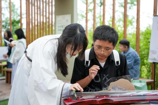 漫漫求索路,悠悠琴韵长。猗兰古琴社成员们现场开展古琴教学,同学们纷纷体验古琴乐曲演奏,感受传统音乐的无限魅力。