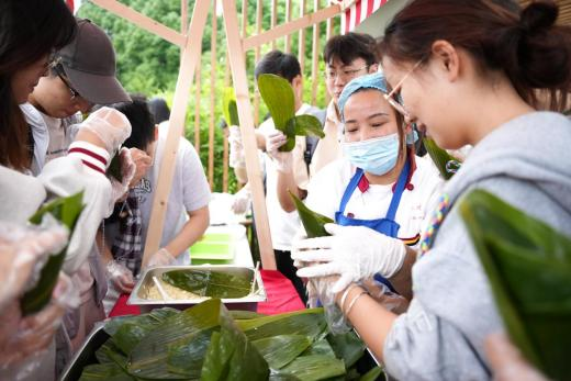 问渠长廊间,中南学子手制香粽,情满端午。在后勤保障部饮食服务中心工作人员指导下,同学们亲手使用艾叶包粽子,并品尝各类美食,在现场展开了热烈的“甜粽子”“咸粽子”之争。
