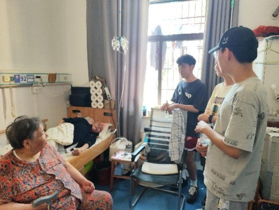 实践团成员们分组陪伴老人聊天,深入了解他们的生活故事和兴趣爱好,倾听他们的心声,并给予情感上的支持。通过交流,志愿者们了解到这些老人曾在本地国企工作了四十余年,退休后被送入养老院,子女们虽然每隔三四天会回来看望他们,但老人们依然感到孤独。志愿者们的到来无疑为他们带来了温暖和慰藉。