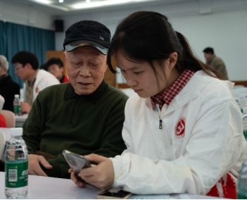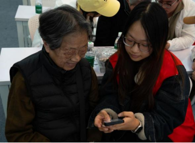 面对“老同学们”在学习过程中不时抛出的各种疑问,年轻的志愿者们始终面带微笑,俯身侧耳,用最通俗易懂的语言一一耐心解答,手把手地指导操作。科技的壁垒在耐心与热情面前悄然消融。即便主持人宣布活动正式结束,许多老人仍意犹未尽,久久不愿离场,将志愿者们团团围住,继续追问着操作细节,眼神中闪烁着求知的亮光。而志愿者们也毫无倦怠,乐此不疲地回应着每一份好奇与热情,他们在服务奉献中体会劳动价值,在沟通互动中锤炼实践能力,这正是学风建设与劳动教育深度融合的生动体现。