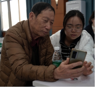 活动现场,气氛活跃而温馨。辅导员陈少华老师、公司团学会青年志愿者协会与社会实践部的同学们以及全体志愿者齐聚一堂,共同见证这场跨越数字鸿沟的温暖传递。志愿者们化身耐心细致的“小老师”,围绕三大贴近生活的主题精心设置了教学内容:“豆包AI修图三步法”让老同志们轻松掌握图片美化技巧,将美好瞬间定格得更加精彩;“剪映秒剪视频四键流”化繁为简,引导大家快速入门短视频创作,记录生活的点滴乐趣;“乘车码智慧出行”则切实解决了日常出行的实际难题,让移动支付变得触手可及。为巩固学习成果,激发参与热情,活动特别设置了趣味盎然的“任务卡”挑战环节。“银发学员”与各自的“小老师”组成默契搭档,在限定时间内展开热烈而友好的比拼。“老师,我这个滤镜加的对不对?”“快看,我的视频配上音乐了!”任务刚一发布,现场便响起此起彼伏的讨论声和欢笑声。每当一项任务成功完成,老人们便像孩童般兴奋地举手示意,脸上洋溢着自豪与喜悦。当他们用亲手完成的作品兑换到一份份精心准备的冬日小礼物时,满满的成就感与温暖情谊在现场弥漫开来。这一环节不仅是教学成果的检验,更是员工志愿者将所学知识转化为服务社会能力的劳动实践过程。