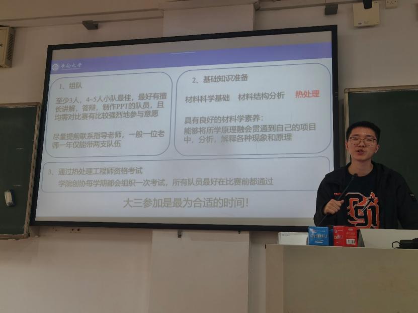 在竞赛方面,许航晨同学着重介绍了热处理大赛,从竞赛意义、准备过程到临场发挥三个方面展开讲解。他结合自身经历,强调了团队合作的重要性,并分享了提高效率和避免失误的实用经验。