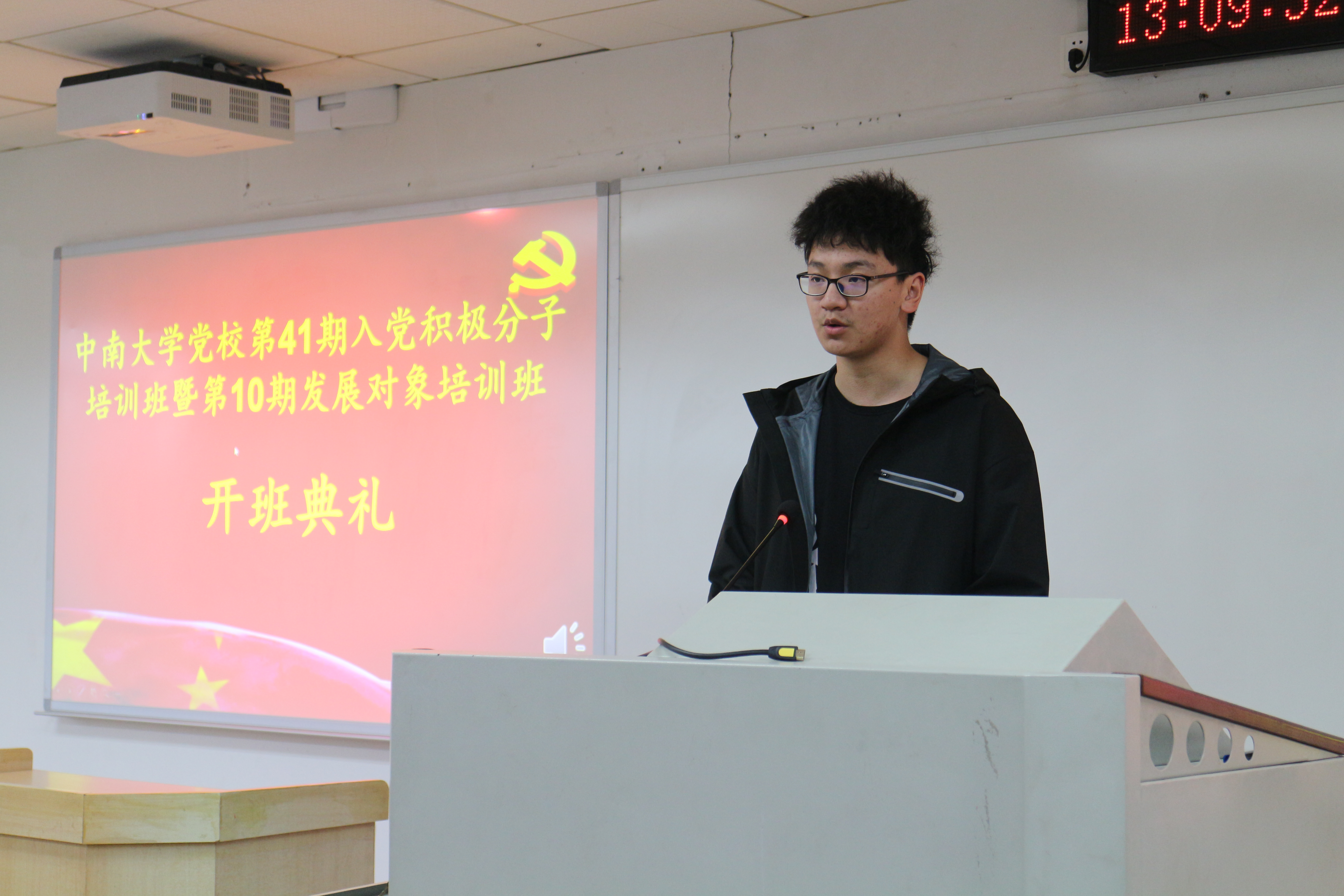随后,来自材料1901班的培训班员工代表李羿颉同学进行了发言。李羿颉同学以积极认真的态度表达了自己对于入党的强烈愿望与决心,并对接下来的思想学习做出了严格、细致的规划,为其他同学树立了一个好榜样。