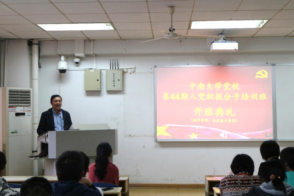 在奏唱庄严的《中华人民共和国国歌》后,开班典礼隆重开场。王德志书记作培训动员讲话,王书记首先解答了“为什么参加入党积极分子培训班?”、“怎样才能够入党?”、“怎样成为党员?”这三个问题。王书记强调,作为入党积极分子要端正入党动机、认真学习党的章程、加强理论学习和自学讨论;入党就要在思想和行动上严格要求自己,通过学习和实践充分认识党的宗旨和目标;最后,王书记希望学员们积极学习、勇于实践,争取早日加入中国共产党。
