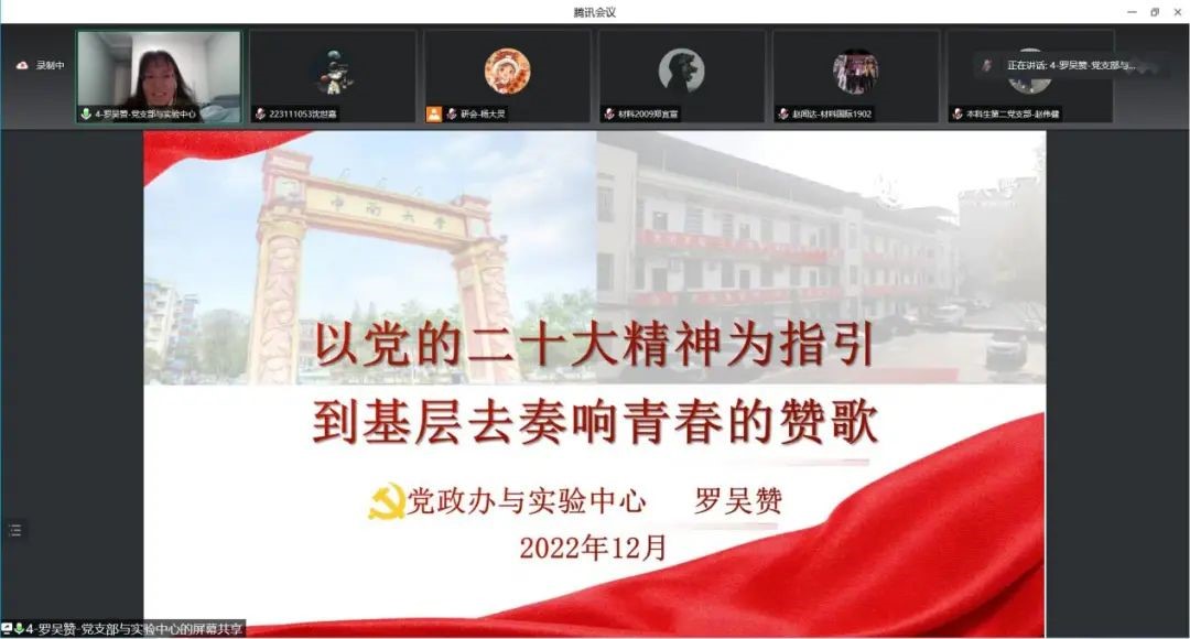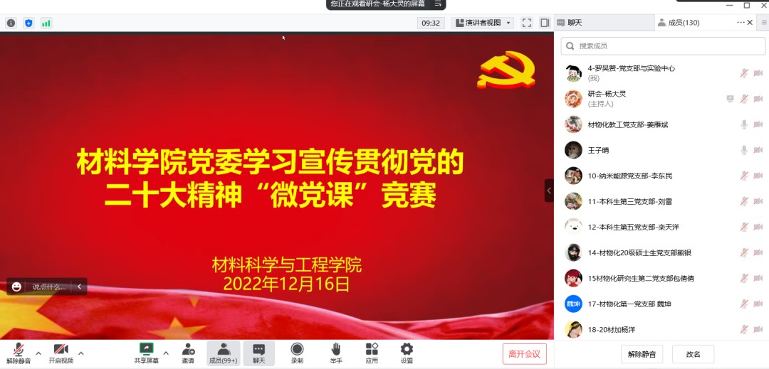 “这次‘微党课’选手们备得充分、讲得精彩,我们也听得认真,学得深入”来自材料学研究生第二党支部的王子晴如是说。党政办与实验中心党支部的罗吴赞说:“通过这次活动,我们以思促讲、以讲促学、以学促行,收获颇丰,接下来要继续以党的二十大精神为指引,扎实做好立德树人工作。”