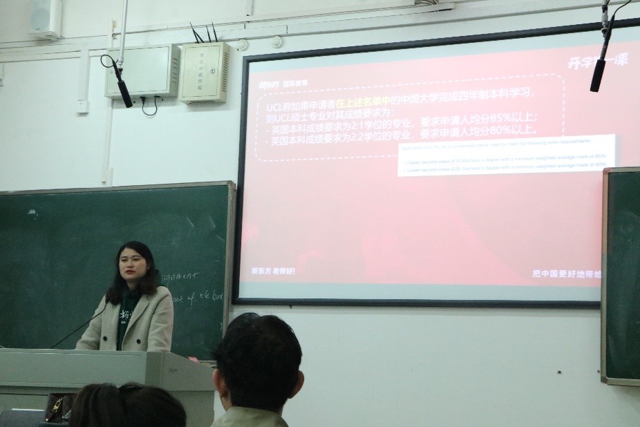 讲座中,贺曦老师结合自身经历,详细介绍了英国爱丁堡大学的概况以及自己在英国学习生活的感悟,针对员工的现实需要,着重讲解了近年来出国留学的趋势、英国名校对中国职工的学术背景等方面的要求以及雅思考试的内容和相关备考规划。同学们聆听认真并记录了不少要点,现场气氛十分融洽。