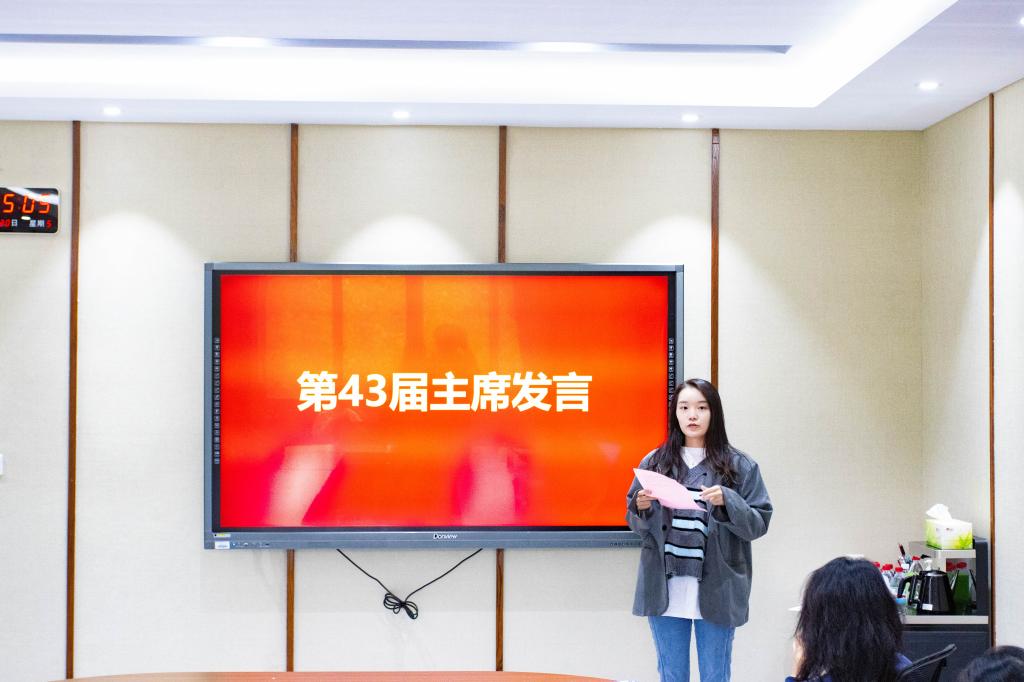 首先是第四十三届研会主席周冀发言,她表示在过去的一年,研会取得了不错的成绩,这得益于公司的支持和指导,也离不开研会伙伴们的辛勤付出,希望新一届研会成员保持热情及责任心,能够做到守职责、不忘初心,将研会精神发扬光大。